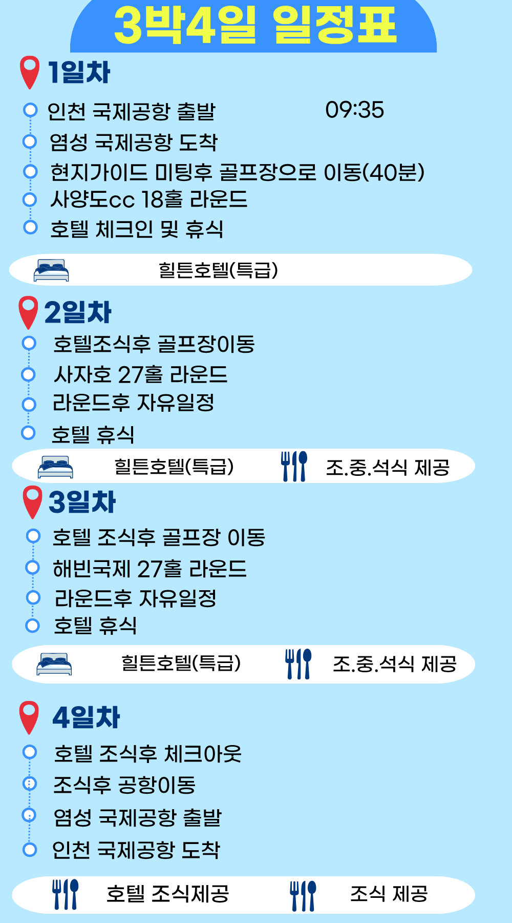 ⛳골프스케쥴 : 3박 4일 (0-27-27-18)