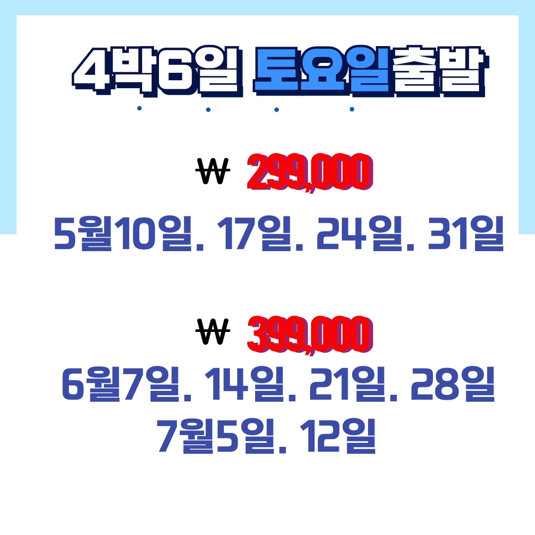๐๋งค์ฃผ ํ ์์ผ ์ถ๋ฐ 4๋ฐ 6์ผ