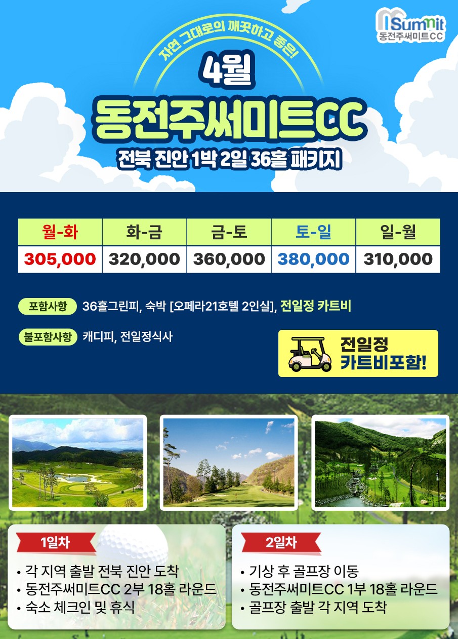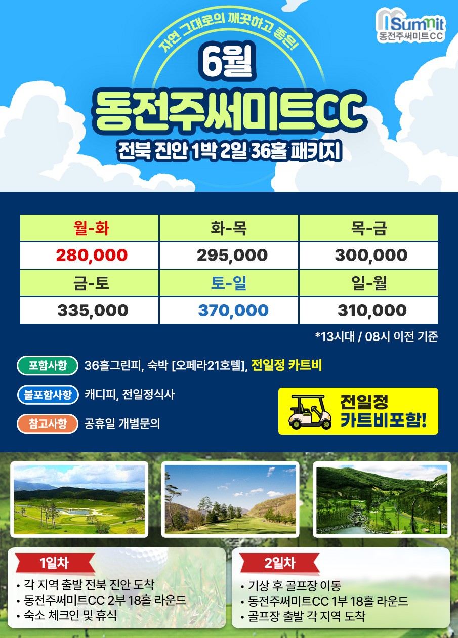 ⛳동전주 써미트CC🌼1박2일 자차골프 패키지