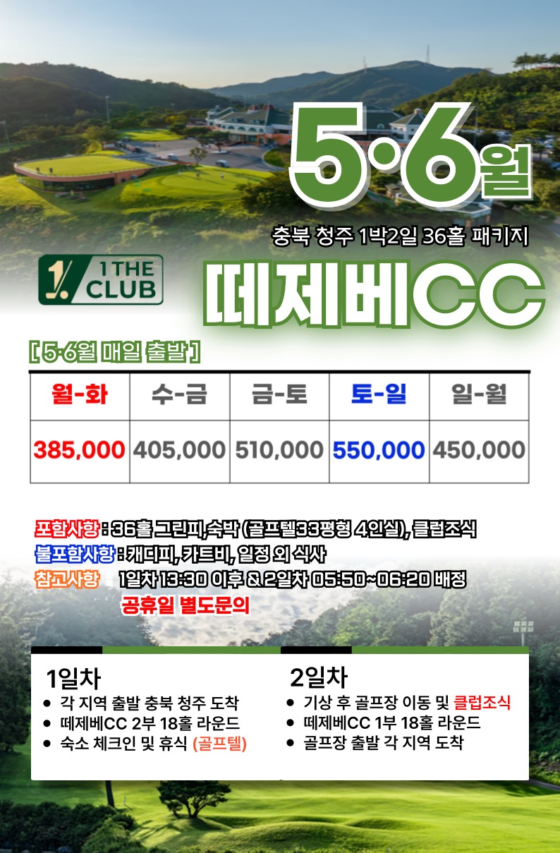 💥5*-6월 충북 청주 떼제베cc / 1박2일 패키지 💥