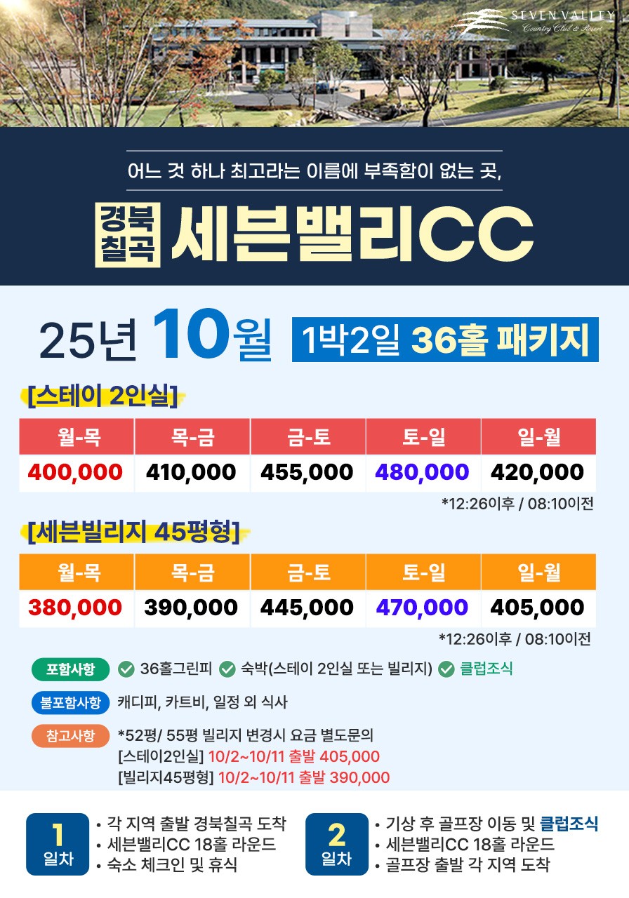 💥세븐밸리CC 1박2일 자차골프패키지💥