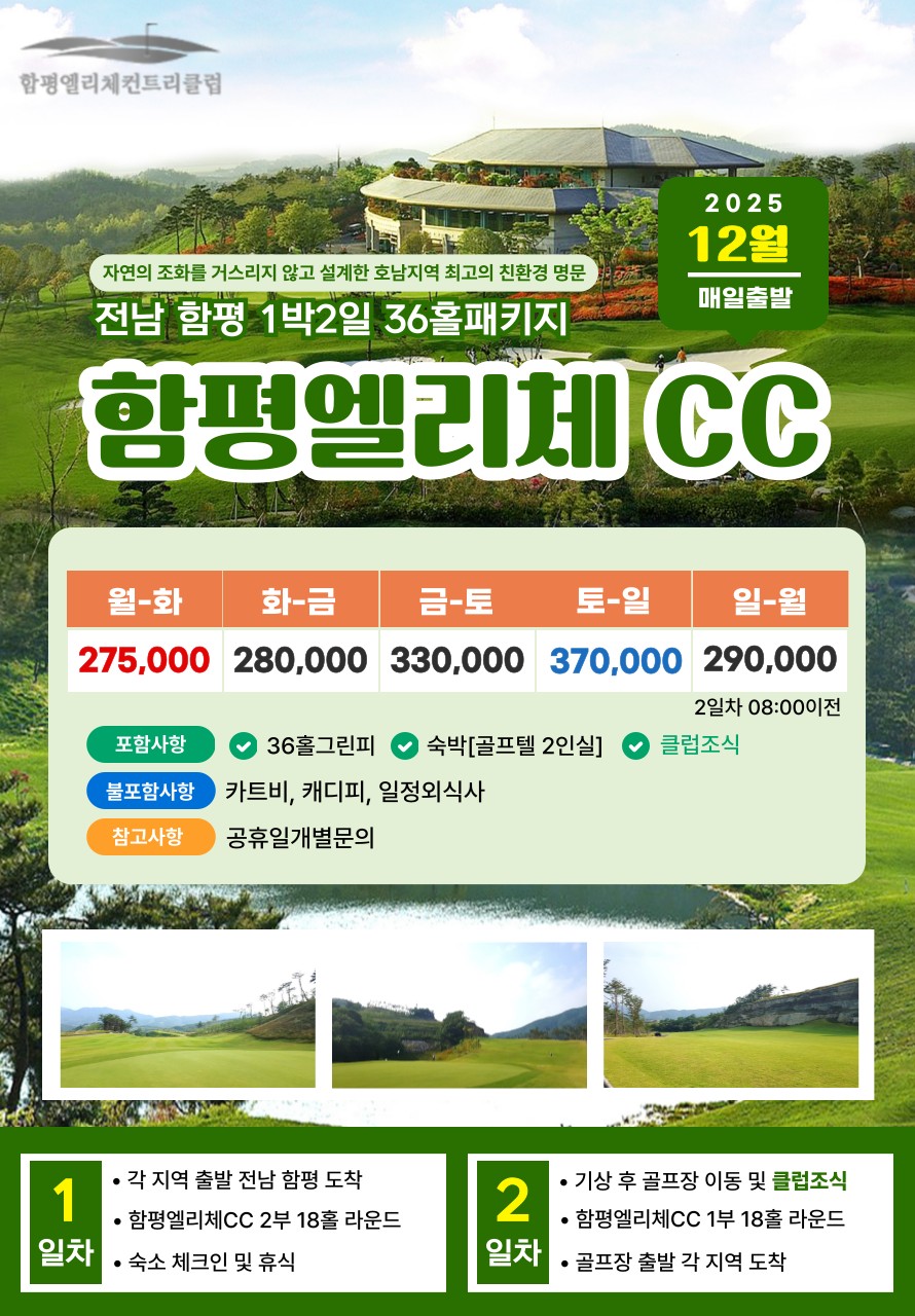 ⛳ 함평엘리체 1박 2일 자차골프 패키지⛳