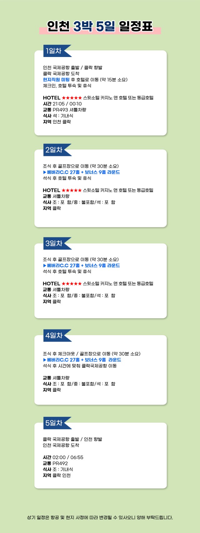 ❇️연휴 전/후 클락초특급💥799,000원~(54홀)3박5일/4박5일❇️