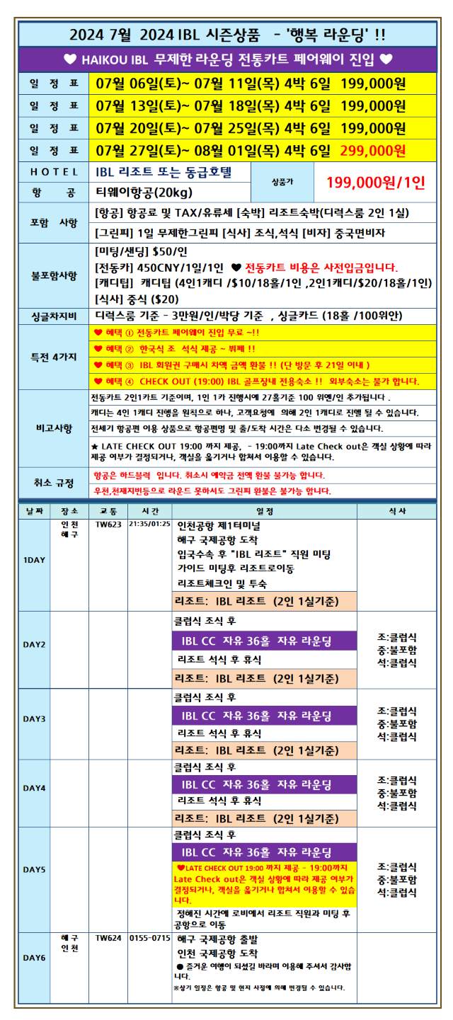 โค07์ 20์ผ(ํ )~ 07์ 25์ผ(๋ชฉ) 4๋ฐ 6์ผ 199,000์