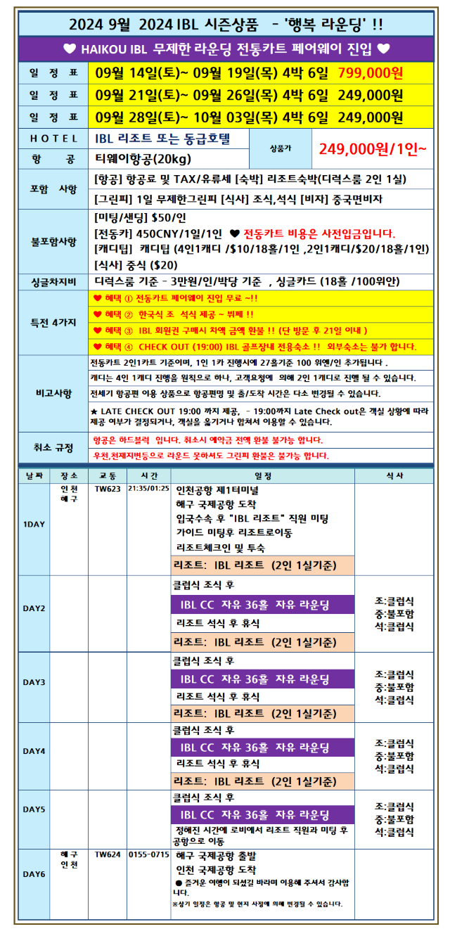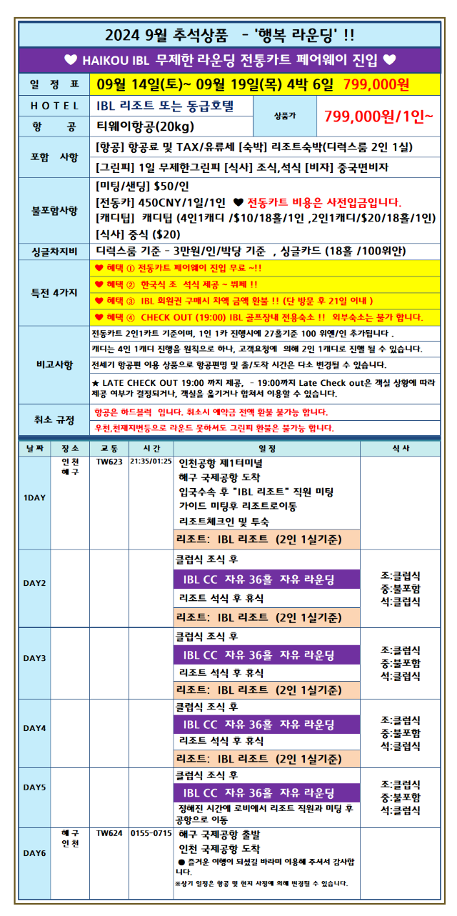 ๐09์ 14์ผ(ํ )~ 09์ 19์ผ(๋ชฉ) 4๋ฐ 6์ผ 799,000์