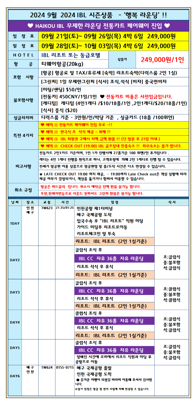 ๐09์ 21์ผ(ํ )~ 09์ 26์ผ(๋ชฉ) 4๋ฐ 6์ผ 249,000์