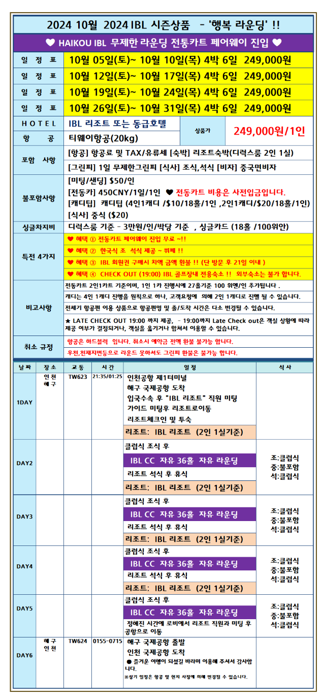 ๐10์ 19์ผ(ํ )~ 10์ 24์ผ(๋ชฉ) 4๋ฐ 6์ผ 249,000์