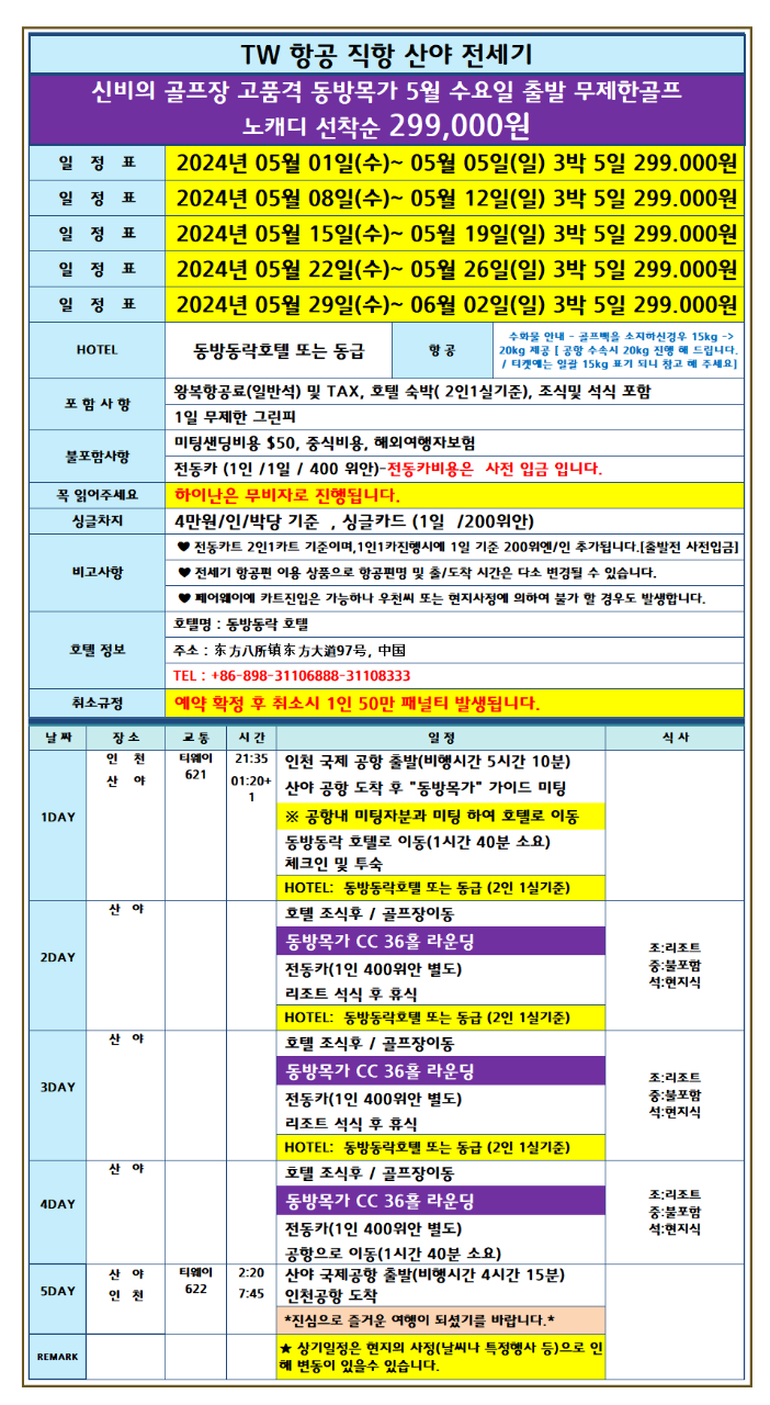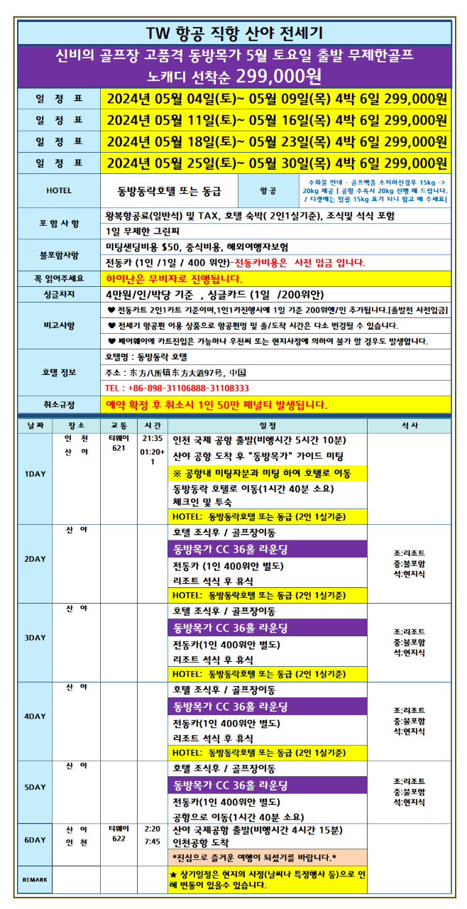 💛 해남도 삼아 동방목가CC 초특가 할인 이벤트!!