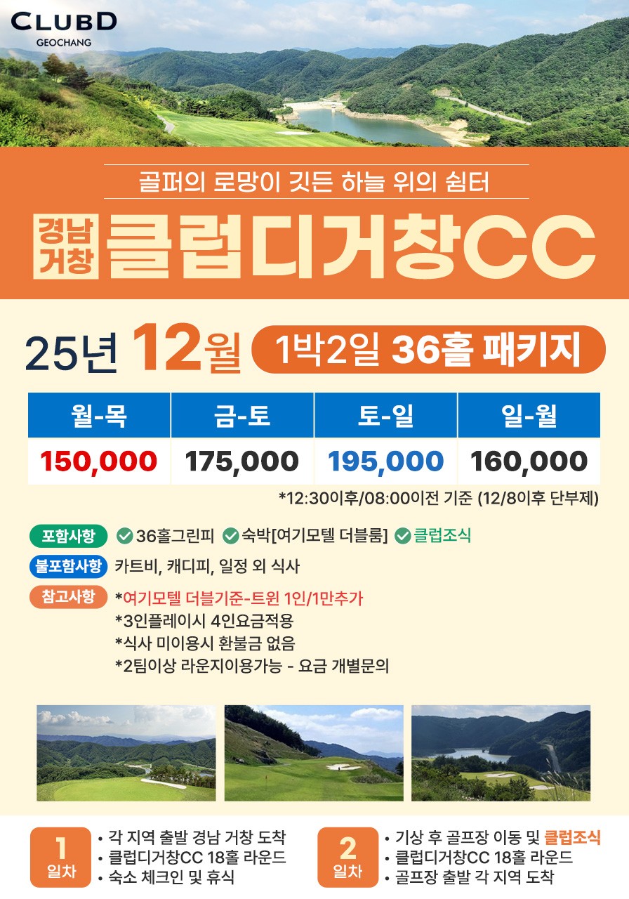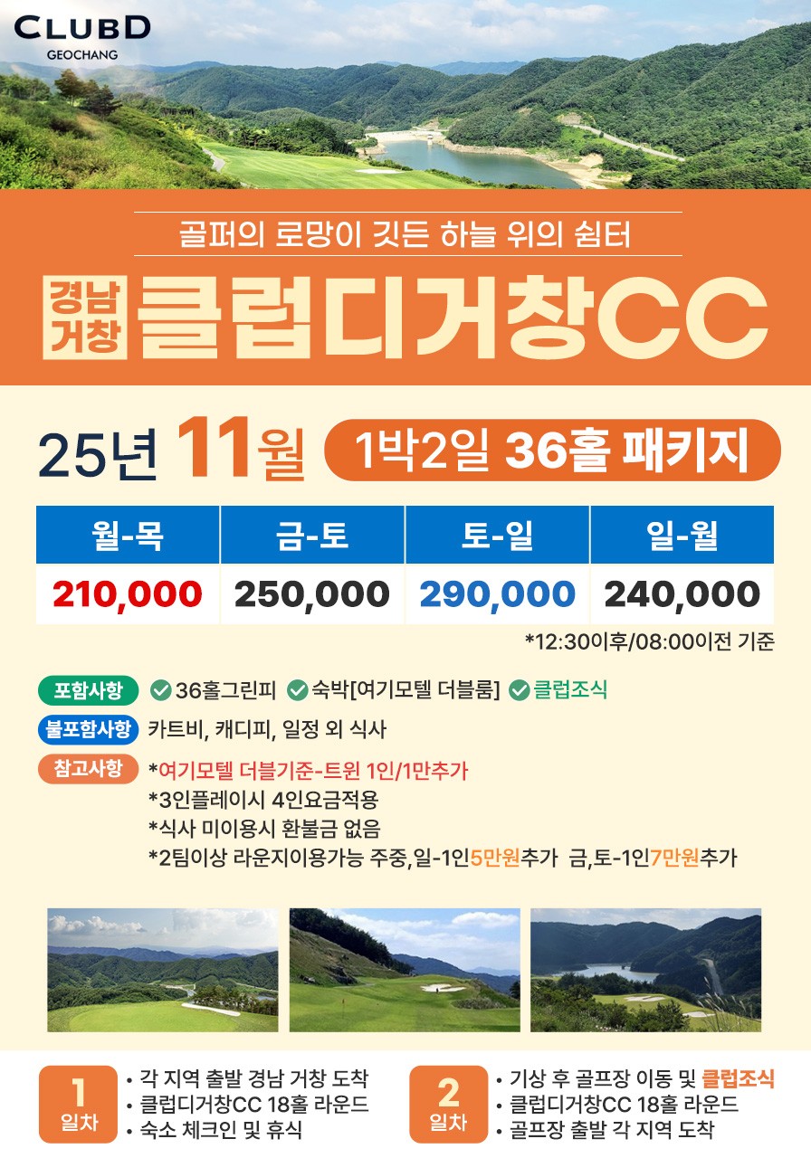 💥클럽디거창CC 1박2일 자차골프 패키지💥