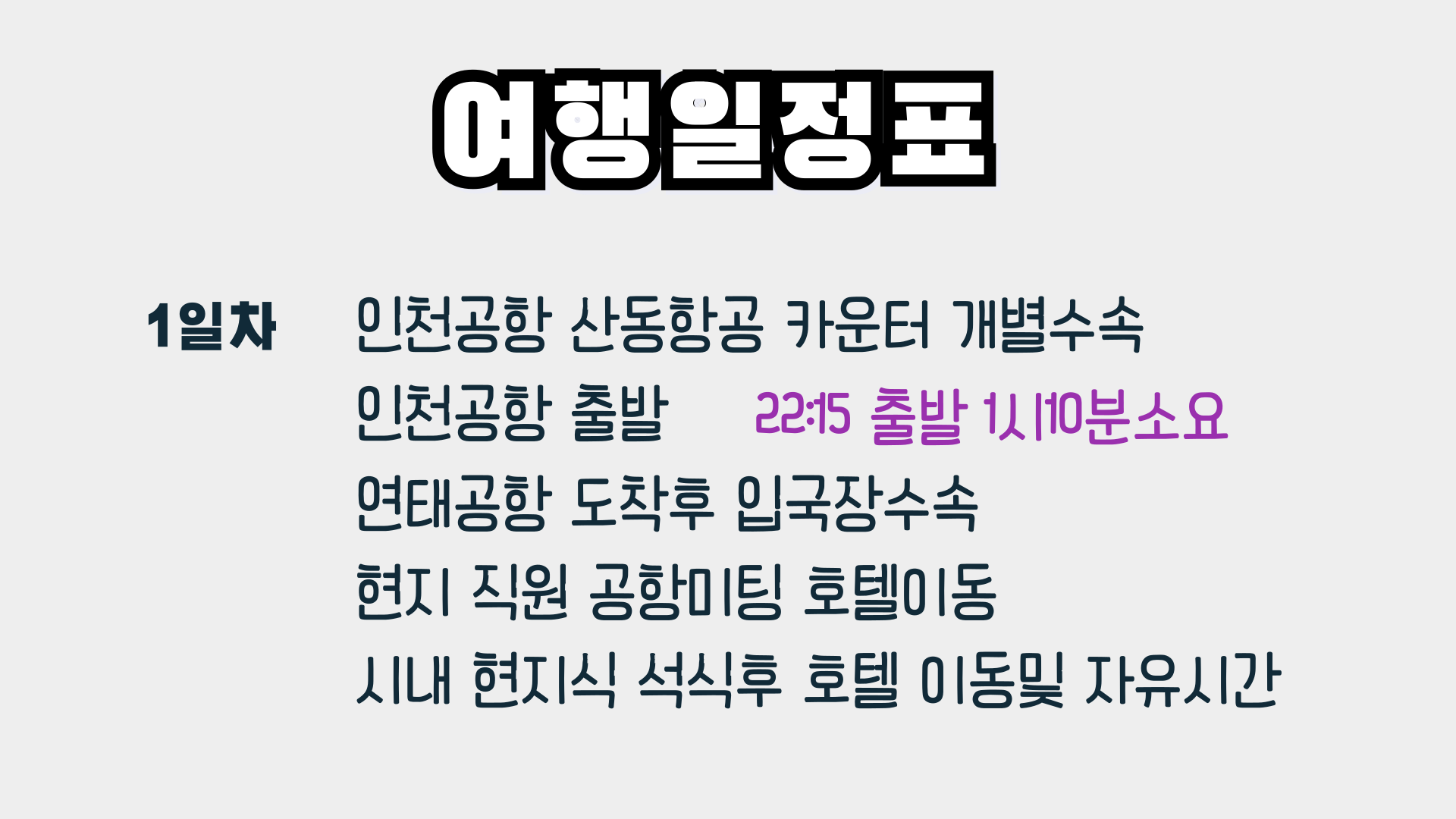 1. 인천↔연태 가까운 비행거리 단 1시간 소요