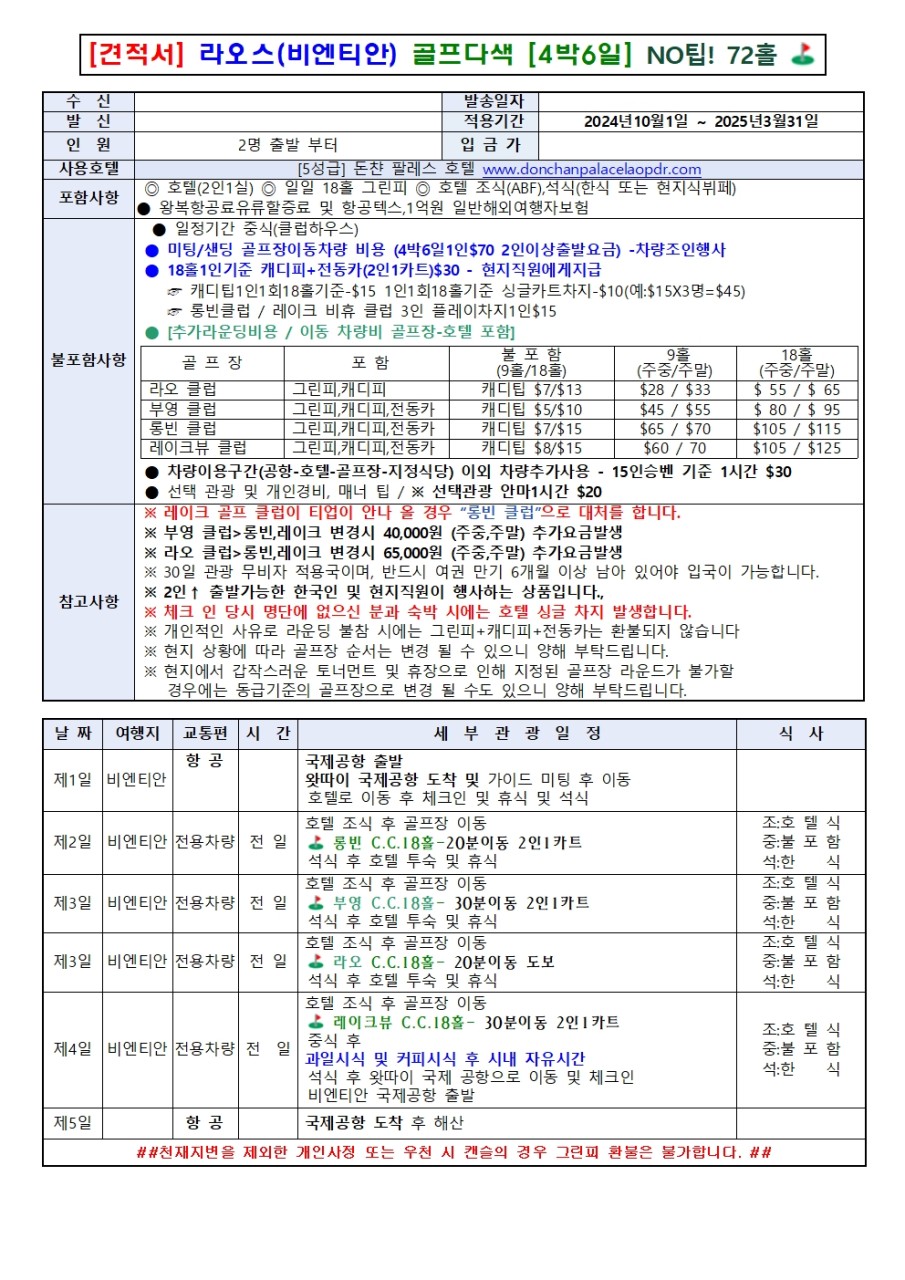 - ๋กฑ๋น์ ๊ทธ๋ฆฐํผ /์นดํธํผ: (9ํ) [์ฃผ์ค $65/์ฃผ๋ง$70] (18ํ) : [์ฃผ์ค$105/์ฃผ๋ง$115]