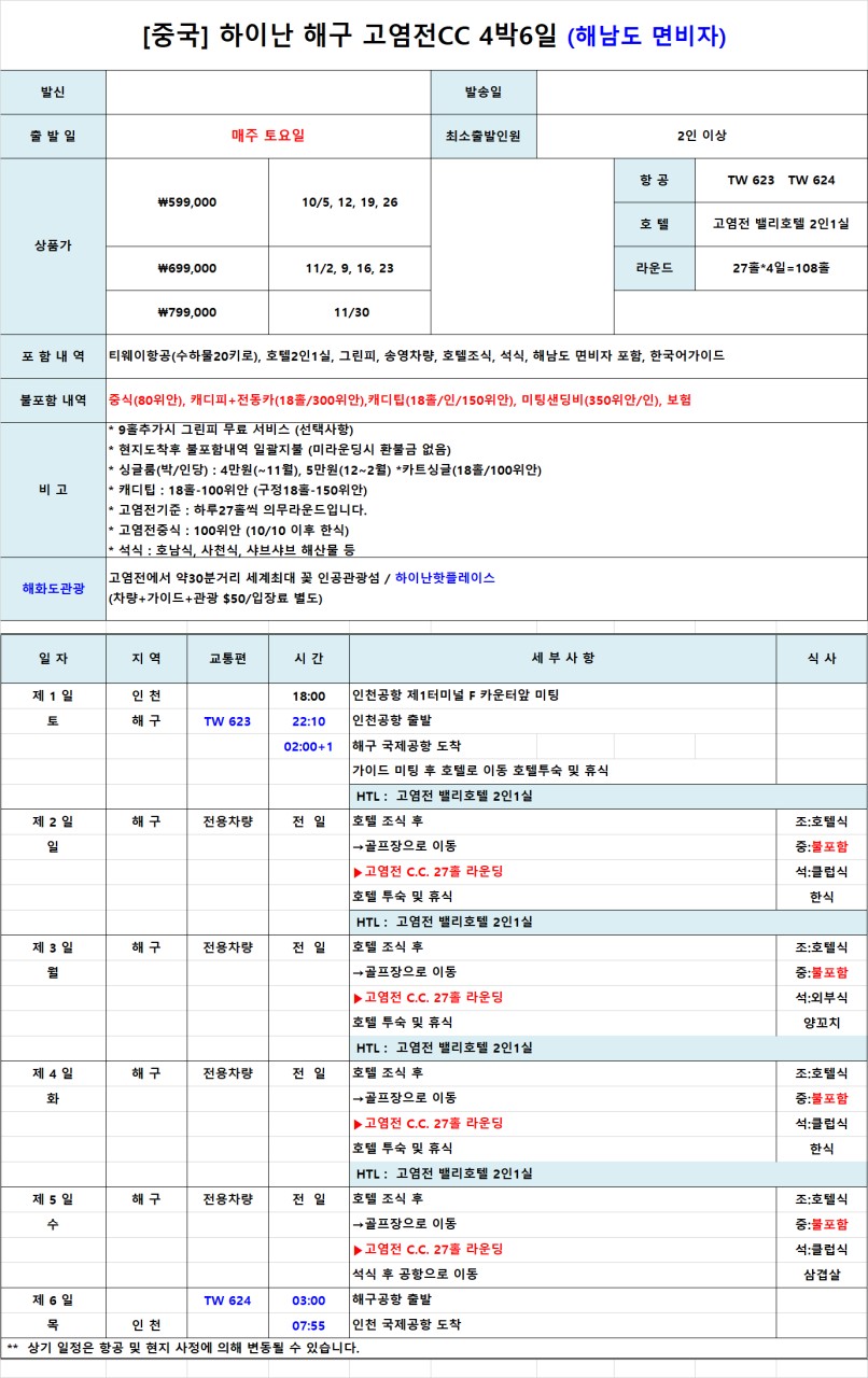 ๐[ํ ์์ผ ์ถ๋ฐ 4๋ฐ6์ผ]๐