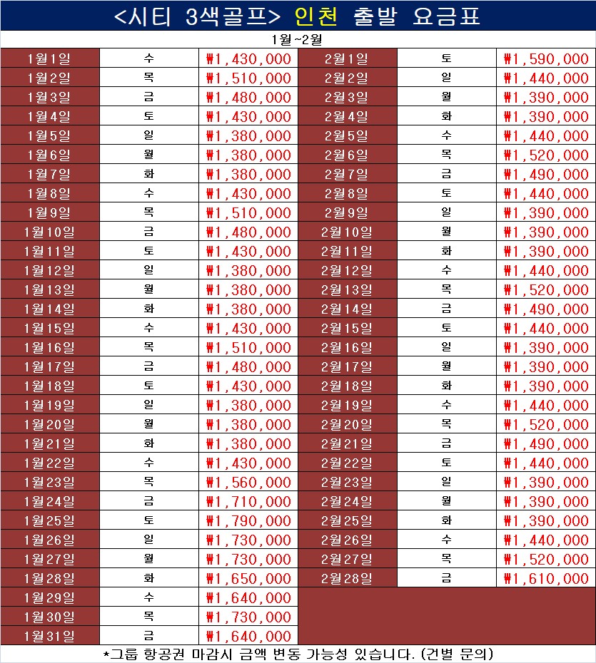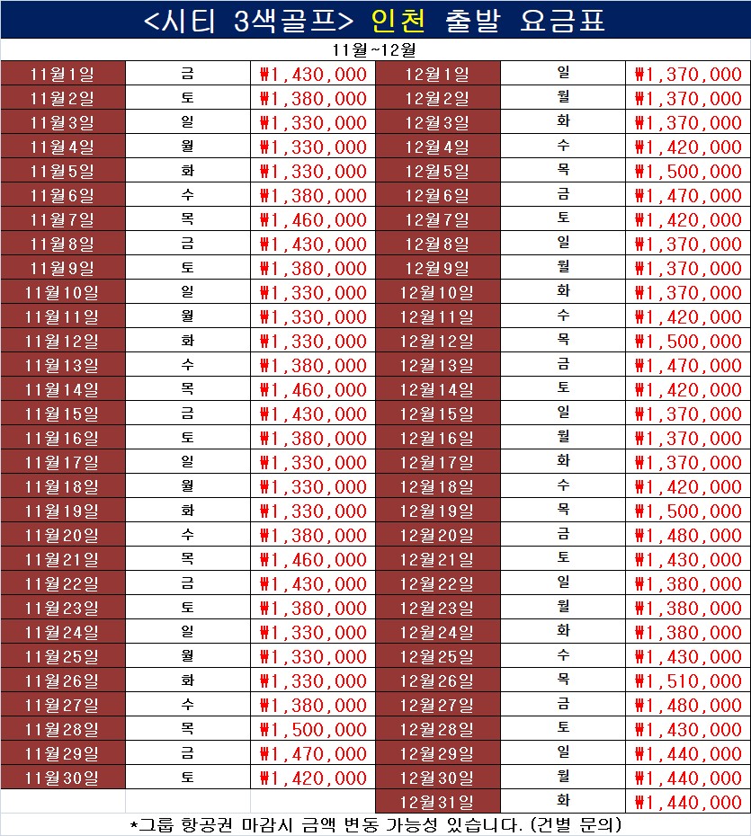 ✔ 골프장 상항에 따라 현지 조인될 수 있습니다