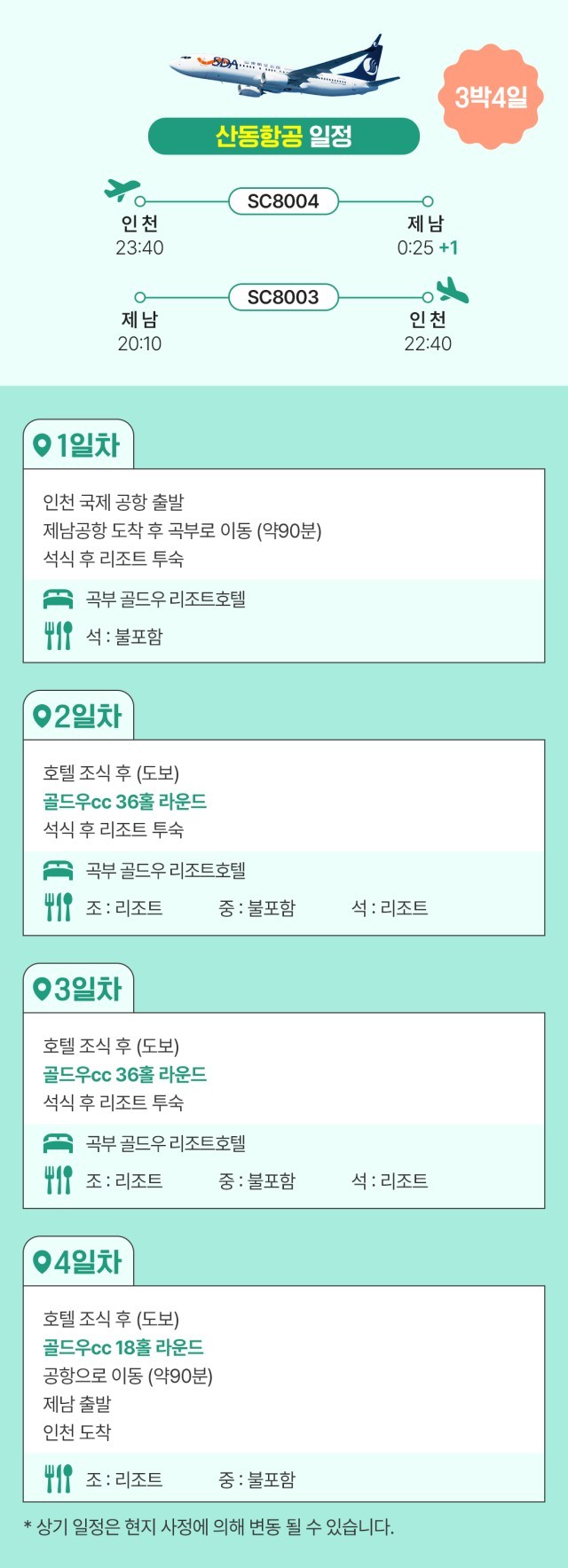 *마지막날 고운호 CC 변경 시 5만원/인 추가