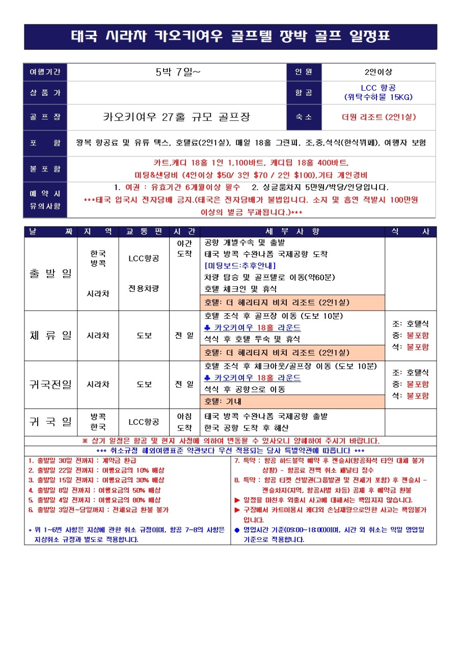 #태국골프 #편안한골프텔 #27홀골프장 #카오키여우 #더원리조트 #한식조중석식