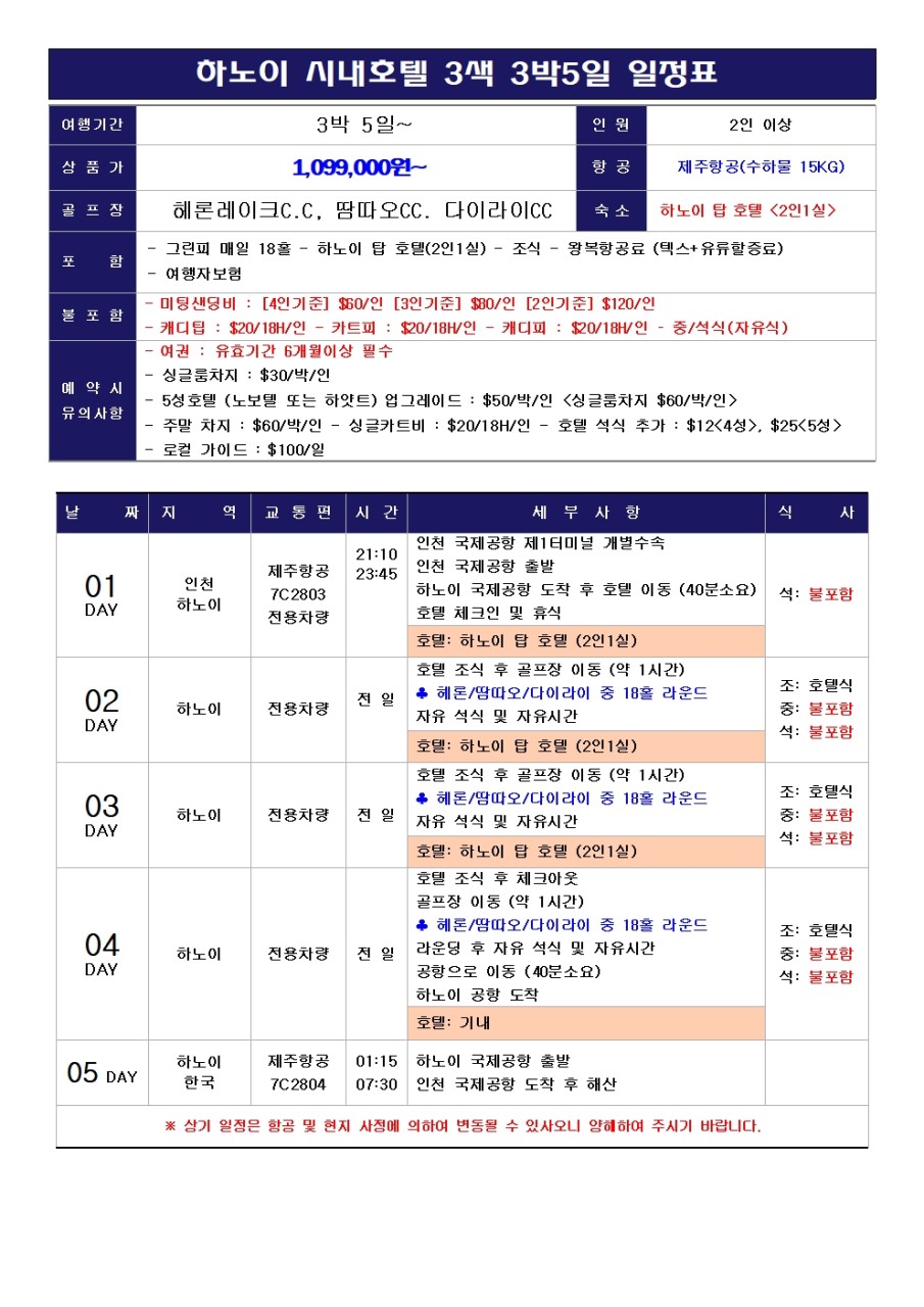 ⛳골프스케쥴 : 3박 5일 (0-18-18-18-0)
