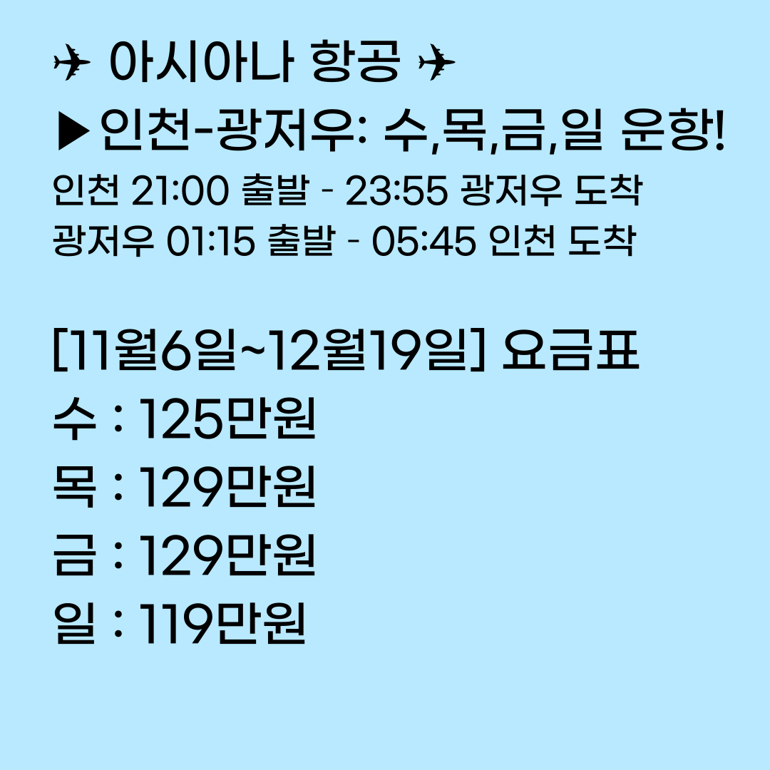 💥수,목,금,일 출발 3박5일 (아시아나 항공)