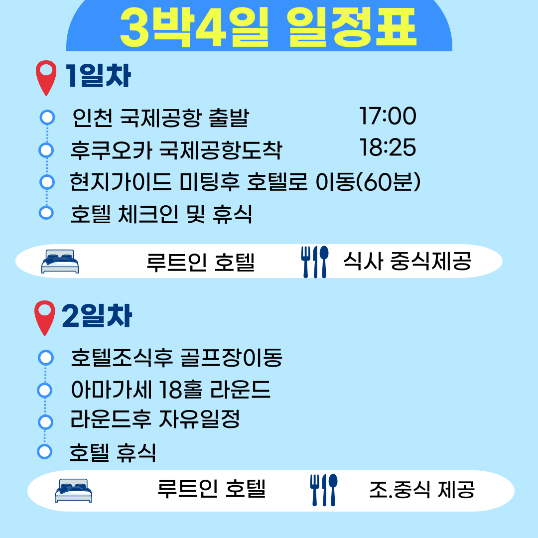 👍 후쿠오카 공항에서 1시간,호텔<=>골프장 10~20분