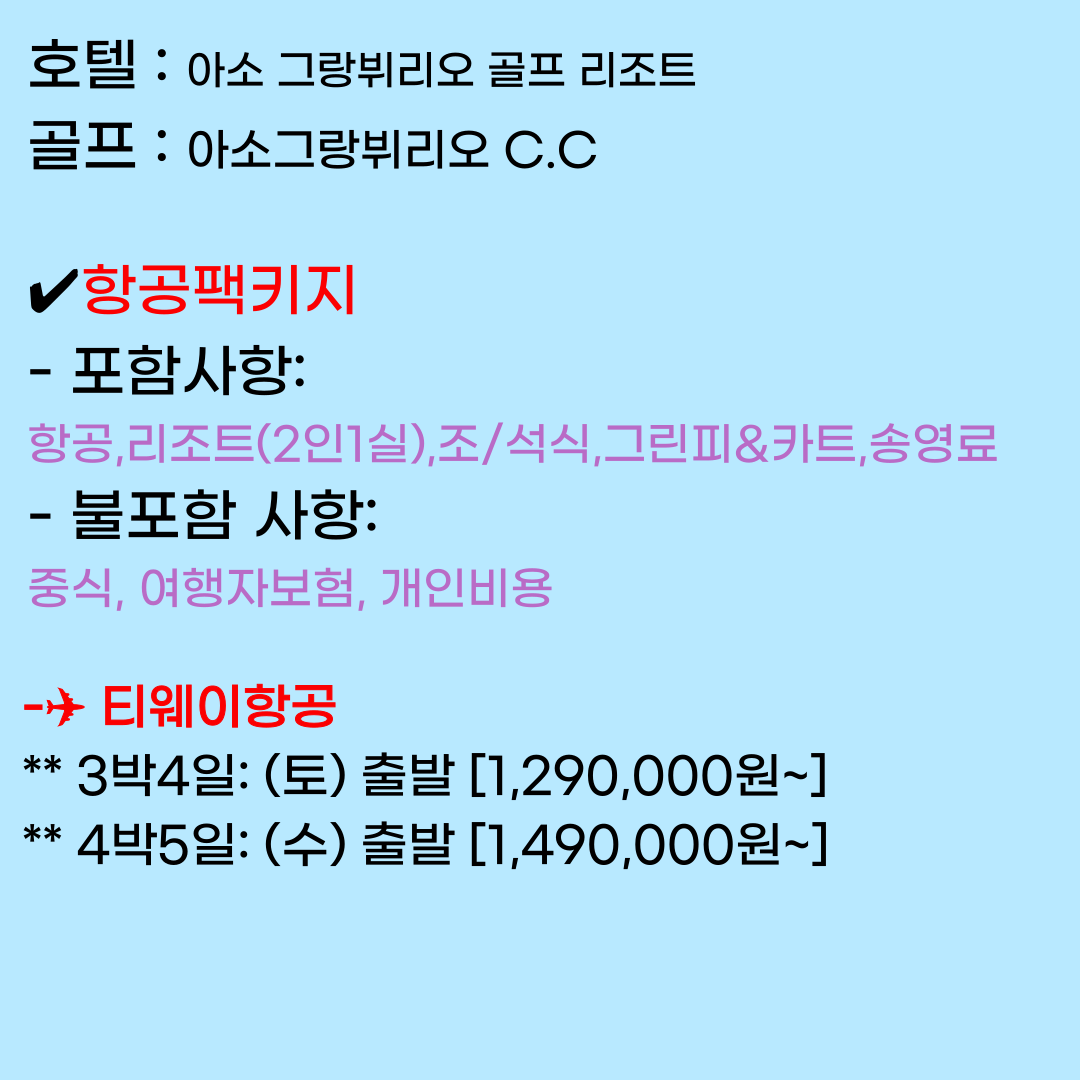 ▶ 아소그랑비리오리조트 (2인/1실)