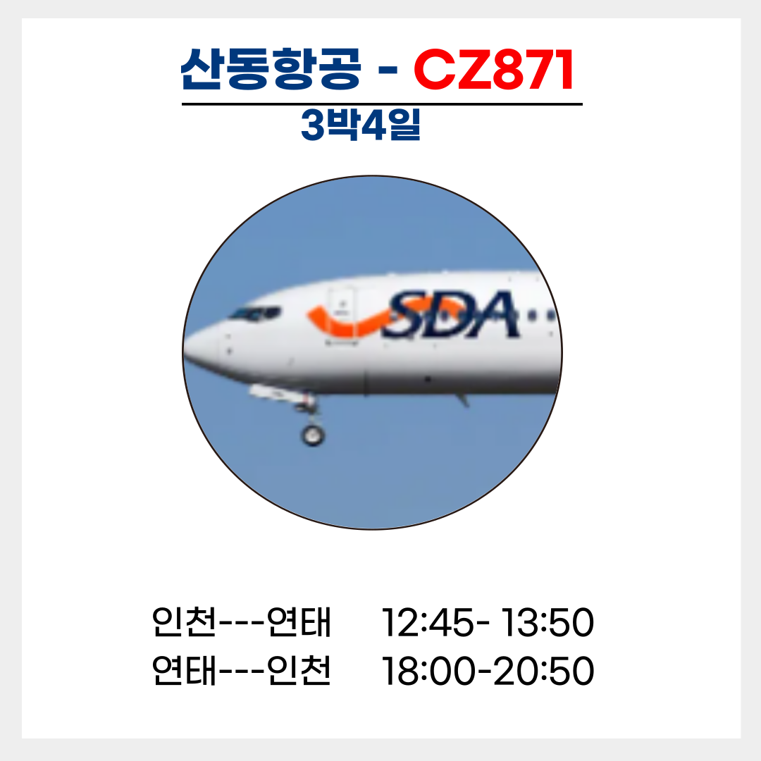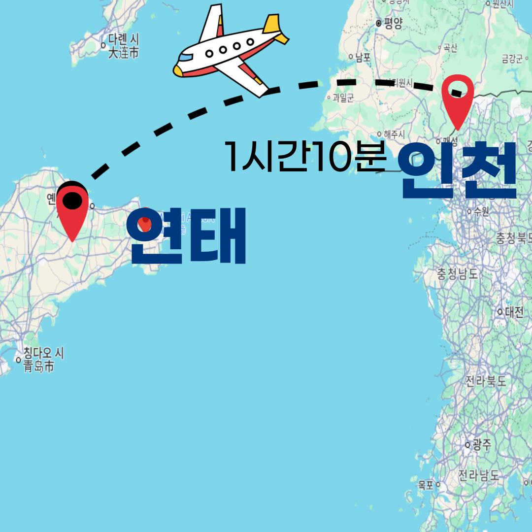 ☞ 인천 <=> 연태 비행시간 1시간