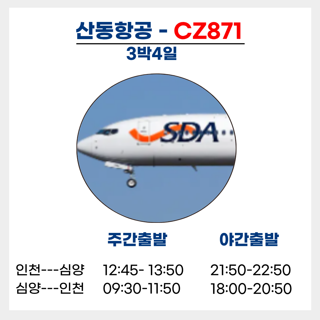 ✔ 중국남방항공 인천–심양 노선 이용 가능