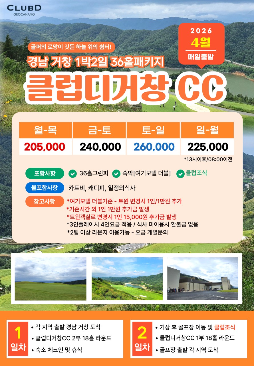 💥클럽디거창CC 1박2일 자차골프 패키지💥